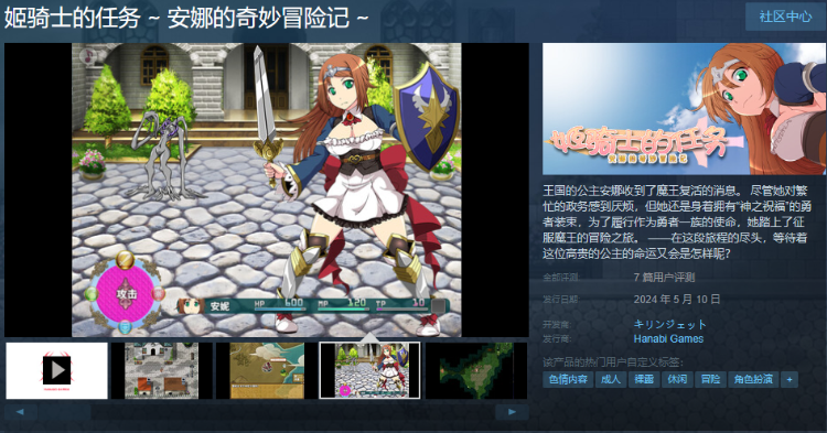 「姬骑士的任务 ~ 安娜的奇妙冒险记 ~ 」是由日本知名游戏社团キリンジェット制作,Hanabi games汉化发行的一款RPG游戏。